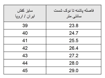 • سپس با مقایسه اندازه‌های خود با جدول پایین ​​​​​​​سایز مناسب را انتخاب نمایید.