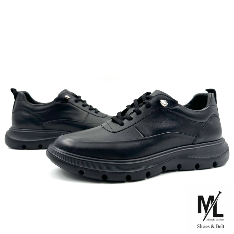 کفش ارتوپدیک طبی راحتی چرم مردانه | کد:H45 | چرم میخچی | مشکی رنگ | جنس رویه از چرم طبیعی گاوی ارگانیک تبریز