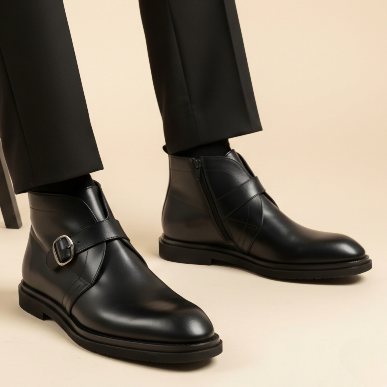 نیم بوت رسمی چرم مردانه طرح سگک دار مدل M402 | چرم میخچی
