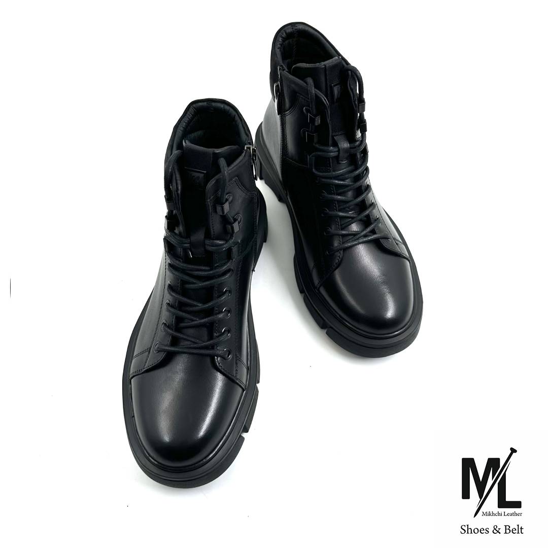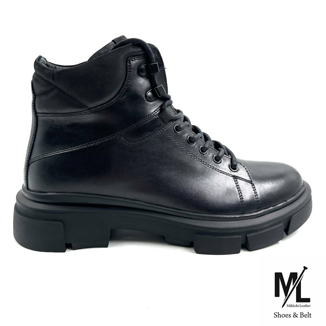 بوت چرم مردانه کژوال روزمره مشکی مدل P24 | چرم میخچی