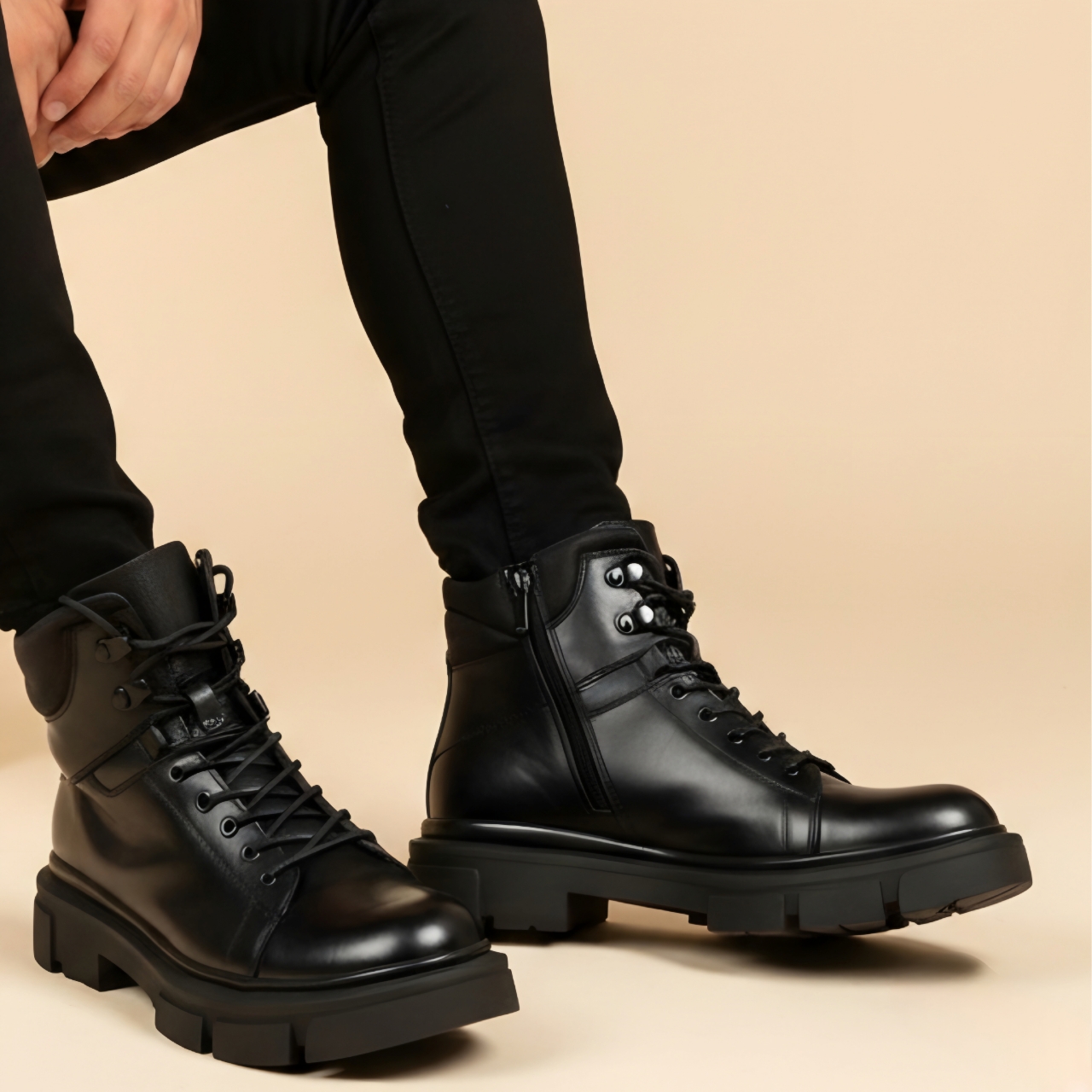 بوت چرم مردانه کژوال روزمره مشکی