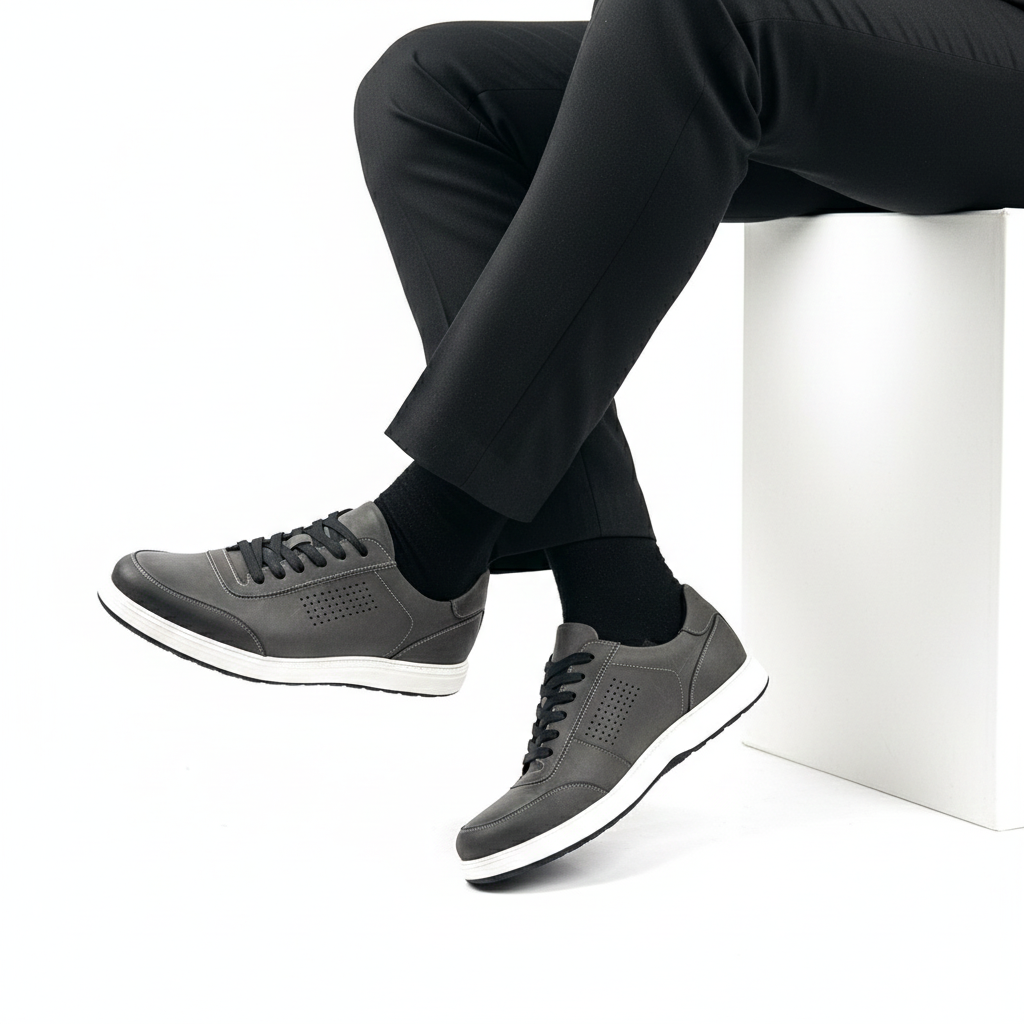 خرید کفش کتانی طبی تمام چرم مردانه طوسی | کد:E110 | چرم میخچی